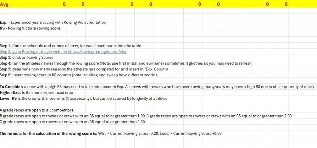 By combining each rower’s years of racing experience with their official Rowing Victoria score (based on wins and losses), the tool creates an easy-to-read profile for every crew. Totals and averages are calculated automatically, so you can line up multiple crews side by side and instantly see where the strengths and weaknesses might lie.